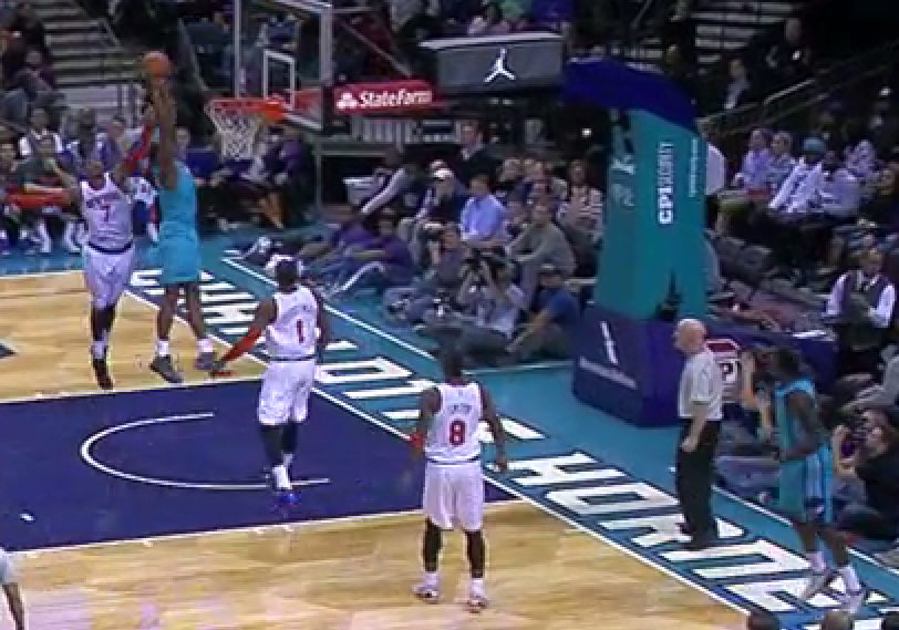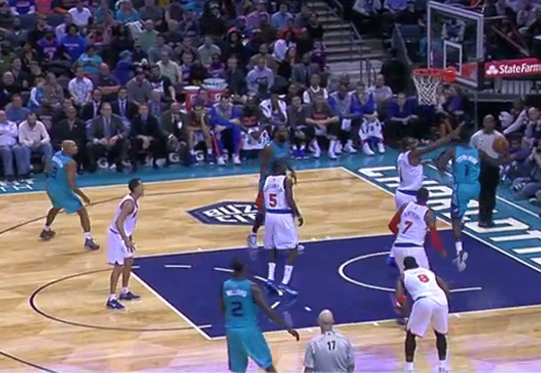 We all know how it goes from there. Kemba tries to draw a charge on Prigioni but doesn’t get the call. Marvin jumps at the Prigioni pump fake, inexplicably leaving Melo wide open for 3. Buckets. The Hornets got some really nice movement coming out of the timeout leading to a wide open baseline jumper for Jefferson that he just misses. The beauty of the design was that it left time for one more possession if needed. 2 chances is always better than 1, especially when you can get such a solid look on the first possession. This was followed by a beautiful defensive possession that led to a difficult shot from Melo that clanged off the rim.